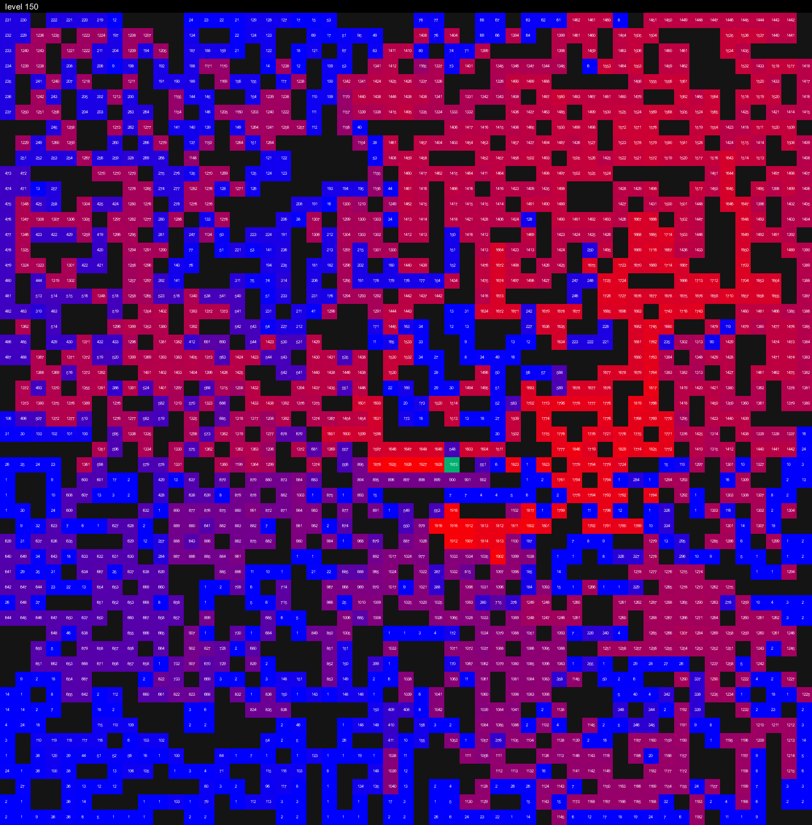 It’s a mess! But it’s easy to improve upon and it’s already much faster. On level 30, for example, the solution time goes from ~1.5 seconds to ~500 milliseconds. (For reference it takes my solver less than 50 milliseconds 😎)